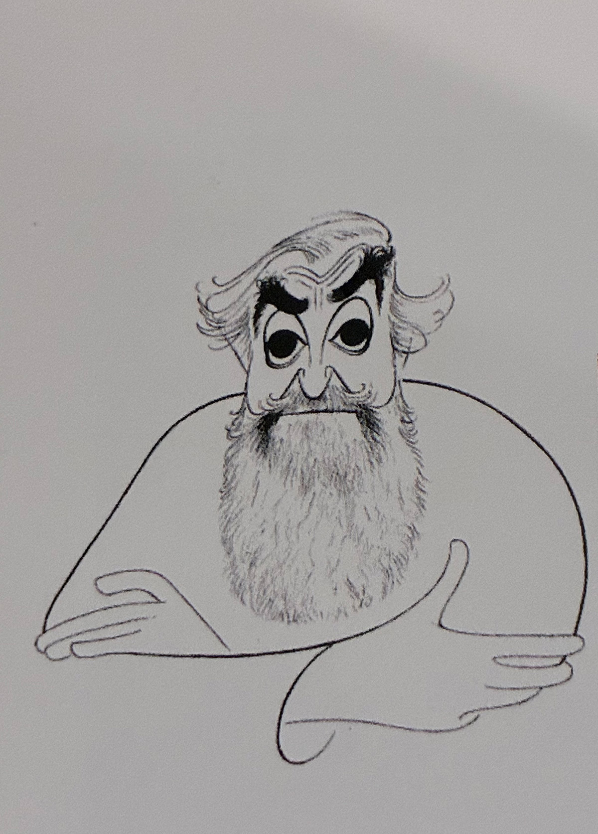 When I was invited to attend the Hirschfeld retrospective, I immediately flashed back to the Sunday NYTimes, front page of the Arts Section. It was an anticipated ‘game’ played by all who adored this brilliant artist. The goal was to locate the hidden ‘Nina’ in Hirschfeld’s signature drawings. For those unfamiliar with this addition/addiction, Al Hirschfeld’s celebrity caricatures included his daughter’s name concealed within the picture. Following his signature was a number, indicating the times Nina’s name was obscured.